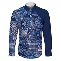 Africa Floral mix Maasai Shuka Family Matching Long Sleeve Bodycon Dress and Hawaiian Shirt Blue Moitf LT9