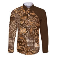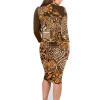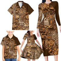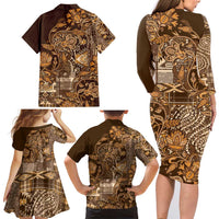 Africa Floral mix Maasai Shuka Family Matching Long Sleeve Bodycon Dress and Hawaiian Shirt Gold Moitf LT9