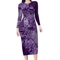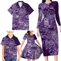 Africa Floral mix Maasai Shuka Family Matching Long Sleeve Bodycon Dress and Hawaiian Shirt Purple Moitf LT9