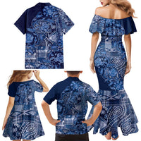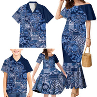 Africa Floral mix Maasai Shuka Family Matching Mermaid Dress and Hawaiian Shirt Blue Moitf LT9