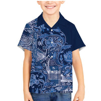 Africa Floral mix Maasai Shuka Family Matching Mermaid Dress and Hawaiian Shirt Blue Moitf