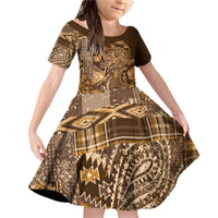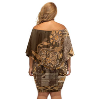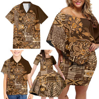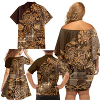 Africa Floral mix Maasai Shuka Family Matching Off Shoulder Short Dress and Hawaiian Shirt Gold Moitf