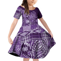 Africa Floral mix Maasai Shuka Family Matching Off Shoulder Short Dress and Hawaiian Shirt Purple Moitf LT9