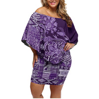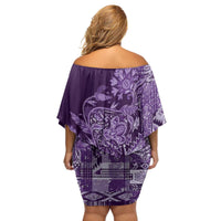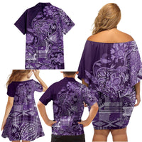 Africa Floral mix Maasai Shuka Family Matching Off Shoulder Short Dress and Hawaiian Shirt Purple Moitf