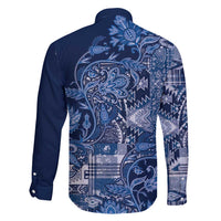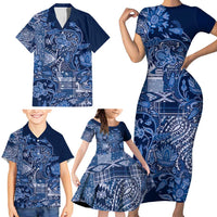 Africa Floral mix Maasai Shuka Family Matching Short Sleeve Bodycon Dress and Hawaiian Shirt Blue Moitf LT9