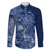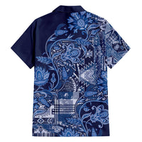 Africa Floral mix Maasai Shuka Family Matching Short Sleeve Bodycon Dress and Hawaiian Shirt Blue Moitf