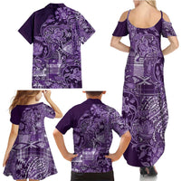 Africa Floral mix Maasai Shuka Family Matching Summer Maxi Dress and Hawaiian Shirt Purple Moitf LT9