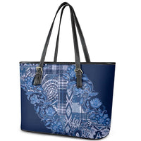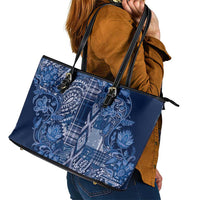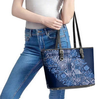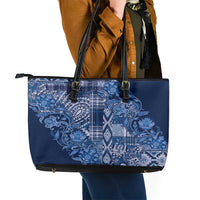 Africa Floral mix Maasai Shuka Leather Tote Bag Blue Moitf LT9