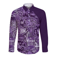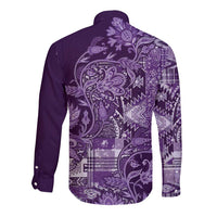 Africa Floral mix Maasai Shuka Long Sleeve Button Shirt Purple Moitf