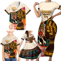 Africa International Women Day Family Matching Short Sleeve Bodycon Dress and Hawaiian Shirt African Pattern
