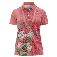 Africa King Proteas Dashiki Motif Women Polo Shirt Peach Style