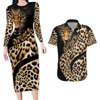 Africa Leopard Skin Pattern Couples Matching Long Sleeve Bodycon Dress and Hawaiian Shirt Version 01