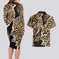 Africa Leopard Skin Pattern Couples Matching Long Sleeve Bodycon Dress and Hawaiian Shirt Version 02