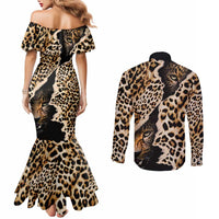 Africa Leopard Skin Pattern Couples Matching Mermaid Dress and Long Sleeve Button Shirt Version 02