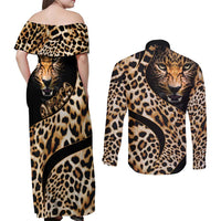 Africa Leopard Skin Pattern Couples Matching Off Shoulder Maxi Dress and Long Sleeve Button Shirt Version 01