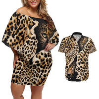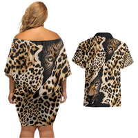 Africa Leopard Skin Pattern Couples Matching Off Shoulder Short Dress and Hawaiian Shirt Version 02 LT9