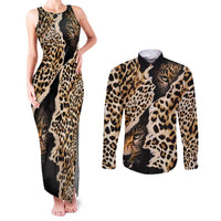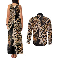 Africa Leopard Skin Pattern Couples Matching Tank Maxi Dress and Long Sleeve Button Shirt Version 02