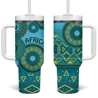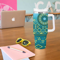 Africa Tribal Traditional Pattern Tumbler With Handle Blue Motif