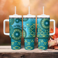 Africa Tribal Traditional Pattern Tumbler With Handle Blue Motif LT9