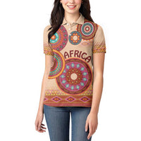 Africa Tribal Traditional Pattern Women Polo Shirt Beige Motif