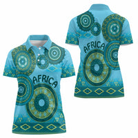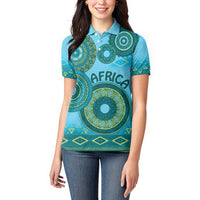 Africa Tribal Traditional Pattern Women Polo Shirt Blue Motif