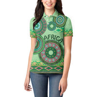Africa Tribal Traditional Pattern Women Polo Shirt Green Motif