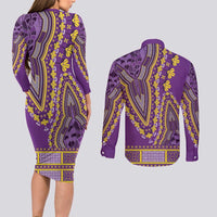 African Dashiki Couples Matching Long Sleeve Bodycon Dress and Long Sleeve Button Shirt Luxury Violet