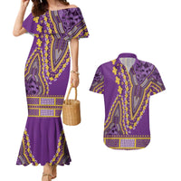 African Dashiki Couples Matching Mermaid Dress and Hawaiian Shirt Luxury Violet