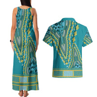 African Dashiki Couples Matching Tank Maxi Dress and Hawaiian Shirt Luxury Teal