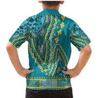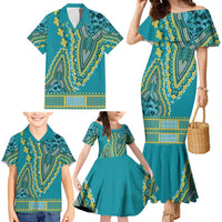 African Dashiki Family Matching Mermaid Dress and Hawaiian Shirt Luxury Teal