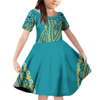African Dashiki Family Matching Off Shoulder Short Dress and Hawaiian Shirt Luxury Teal LT7
