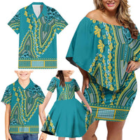 African Dashiki Family Matching Off Shoulder Short Dress and Hawaiian Shirt Luxury Teal