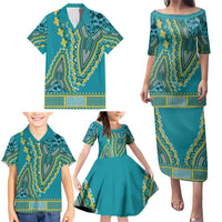 African Dashiki Family Matching Puletasi and Hawaiian Shirt Luxury Teal