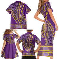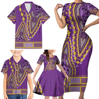 African Dashiki Family Matching Short Sleeve Bodycon Dress and Hawaiian Shirt Luxury Violet