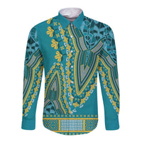 African Dashiki Long Sleeve Button Shirt Luxury Teal