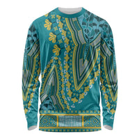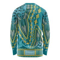 African Dashiki Long Sleeve Shirt Luxury Teal