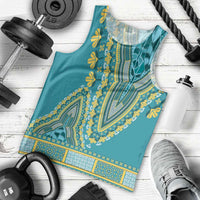 African Dashiki Men Tank Top Luxury Teal