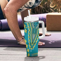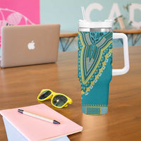 African Dashiki Tumbler With Handle Luxury Teal LT7