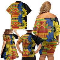 African Ethnic Kitenge Ankara Style Family Matching Off Shoulder Short Dress and Hawaiian Shirt