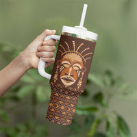 African Mask Printed Mudcloth Tumbler With Handle DT03
