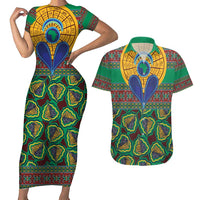 African Pattern Traditional Kanga Style Couples Matching Short Sleeve Bodycon Dress and Hawaiian Shirt LT9