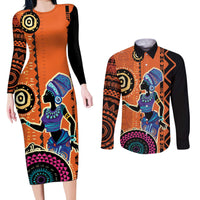 African Woman In Ethnic Dress Couples Matching Long Sleeve Bodycon Dress and Long Sleeve Button Shirt Ethnic Geometric Patterns LT18