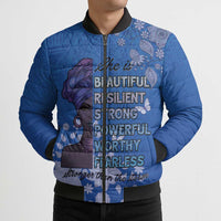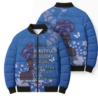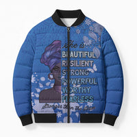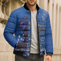 Grab your African Women Bomber Puffer Jacket Black Beautiful Brave and Bressed - Blue Color by Wonder Print Shop today and experience comfort, style, and versatility in one sleek jacket.