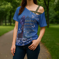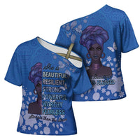 Turn heads and express your unique style with the African Women Cross Shoulder Shirt Black Beautiful Brave and Bressed - Blue Color from Wonder Print Shop. Perfect for casual outings, festivals, or making a fashion statement, this custom-made cross shoulder shirt combines high-end craftsmanship with eye-catching design.