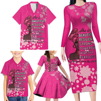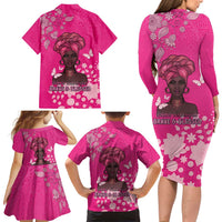 African Women Family Matching Long Sleeve Bodycon Dress and Hawaiian Shirt Black Beautiful Brave and Bressed - Pink Color