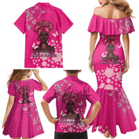 African Women Family Matching Mermaid Dress and Hawaiian Shirt Black Beautiful Brave and Bressed - Pink Color