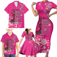 African Women Family Matching Short Sleeve Bodycon Dress and Hawaiian Shirt Black Beautiful Brave and Bressed - Pink Color