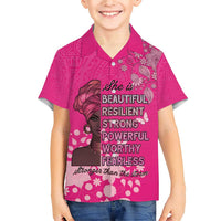 African Women Family Matching Short Sleeve Bodycon Dress and Hawaiian Shirt Black Beautiful Brave and Bressed - Pink Color LT15