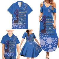 African Women Family Matching Summer Maxi Dress and Hawaiian Shirt Black Beautiful Brave and Bressed - Blue Color