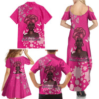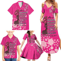 African Women Family Matching Summer Maxi Dress and Hawaiian Shirt Black Beautiful Brave and Bressed - Pink Color